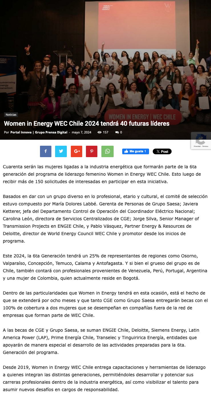 Women in Energy WEC Chile 2024 tendrá 40 futuras líderes - (norteyenegia.cl)