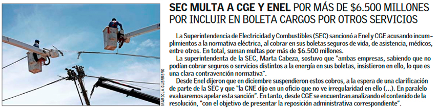 Superintendencia de Electricidad multa a Enel y CGE por cobrar seguros - (Las Últimas Noticias)
