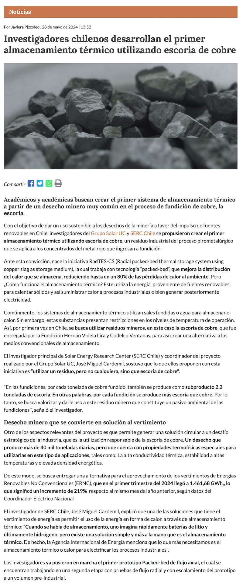 Investigadores chilenos desarrollan el primer almacenamiento térmico utilizando escoria de cobre - (portalinnova.cl)