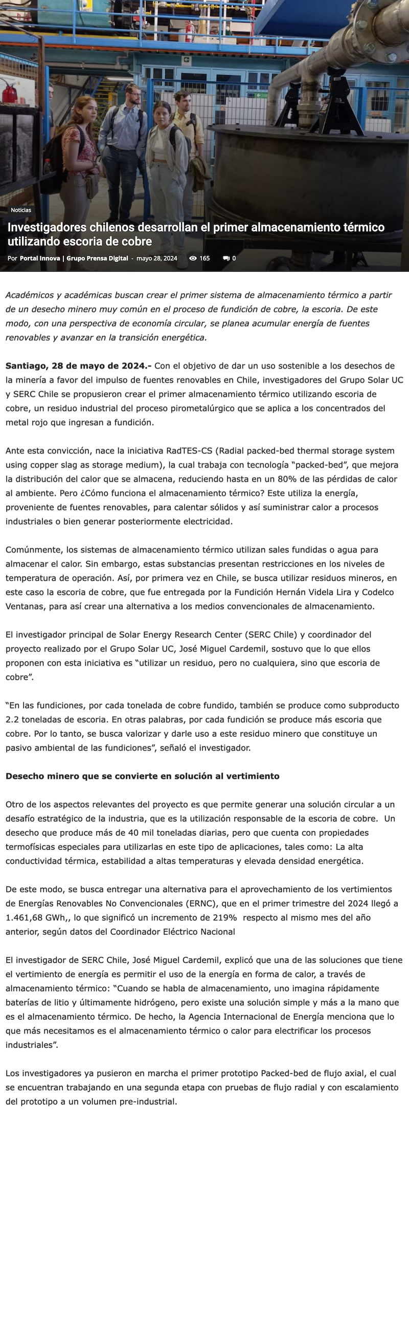 Investigadores chilenos desarrollan el primer almacenamiento térmico utilizando escoria de cobre - (redimin)