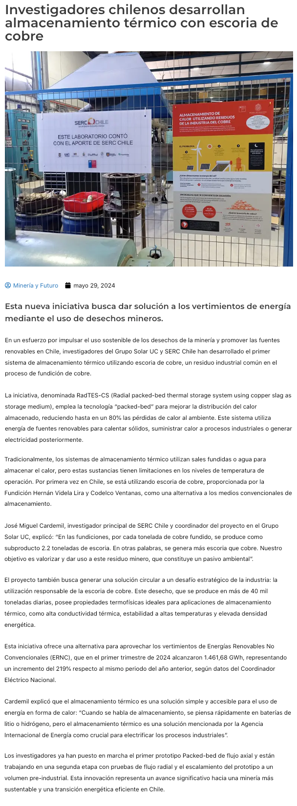 Investigadores chilenos desarrollaron el primer almacenamiento térmico utilizando escoria de cobre - (revistacrisol.cl)
