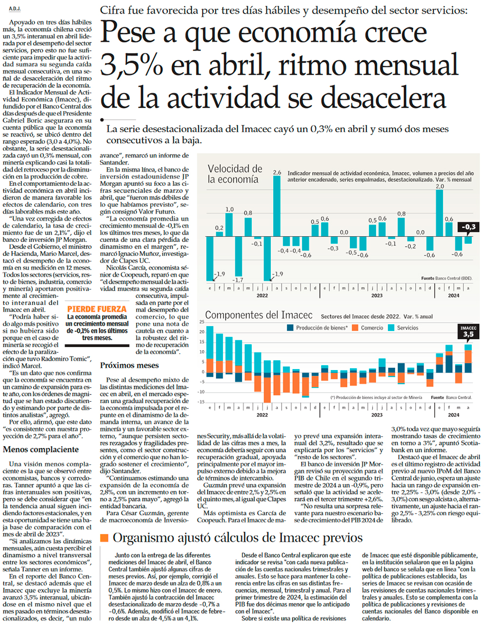 Mercado prevé alza de la economía cercana a 3% en el segundo trimestre tras cifras de abril - (Diario Financiero)