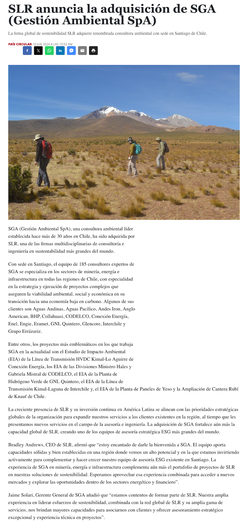 Firma global de sostenibilidad originaria de Reino Unido adquiere consultora ambiental chilena - (DF Online)
