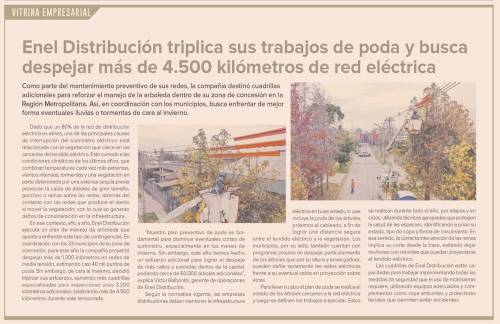 Enel Distribución triplica trabajos de poda y busca despejar más de 4.500 kilómetros de red eléctrica - (biobiochile online)