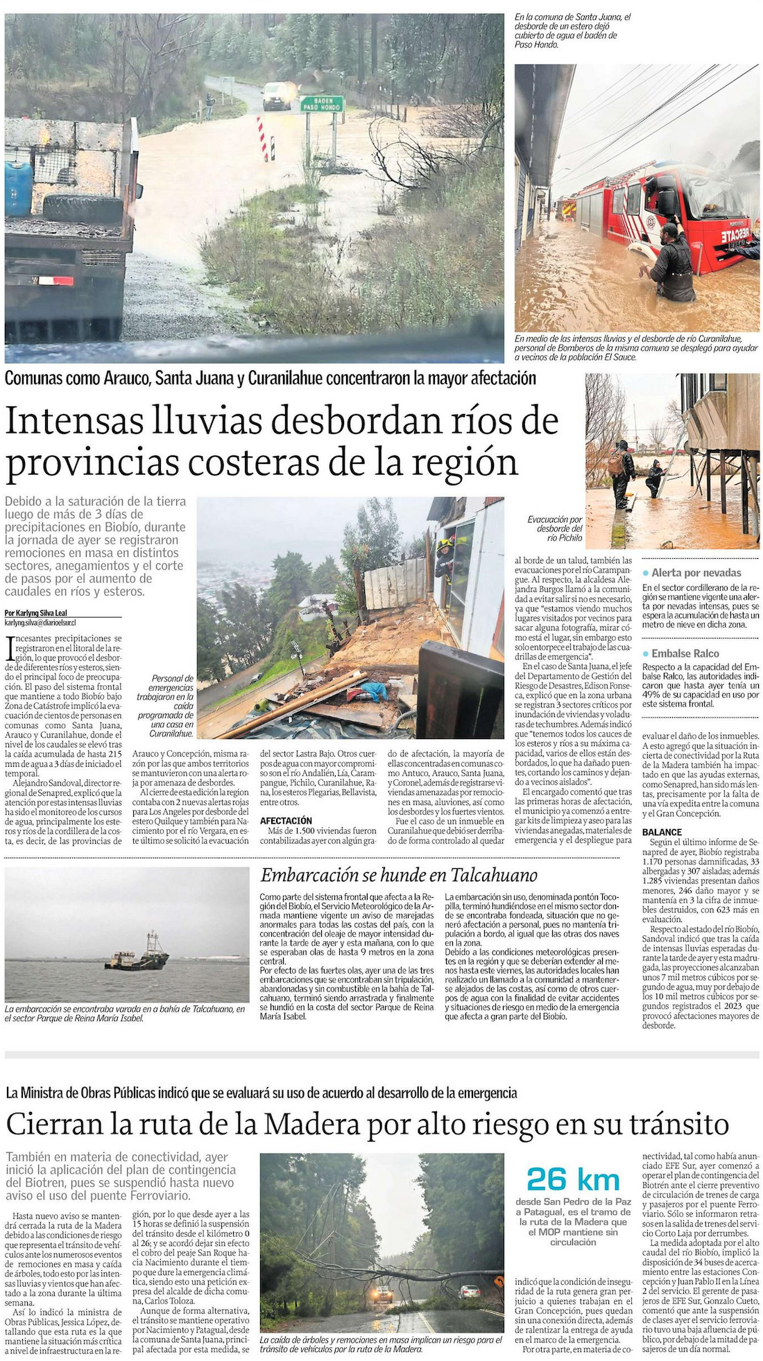 Fuertes vientos e intensas lluvias en pocas horas: sistema frontal levanta mayor alerta en décadas - (El Mercurio de Santiago)