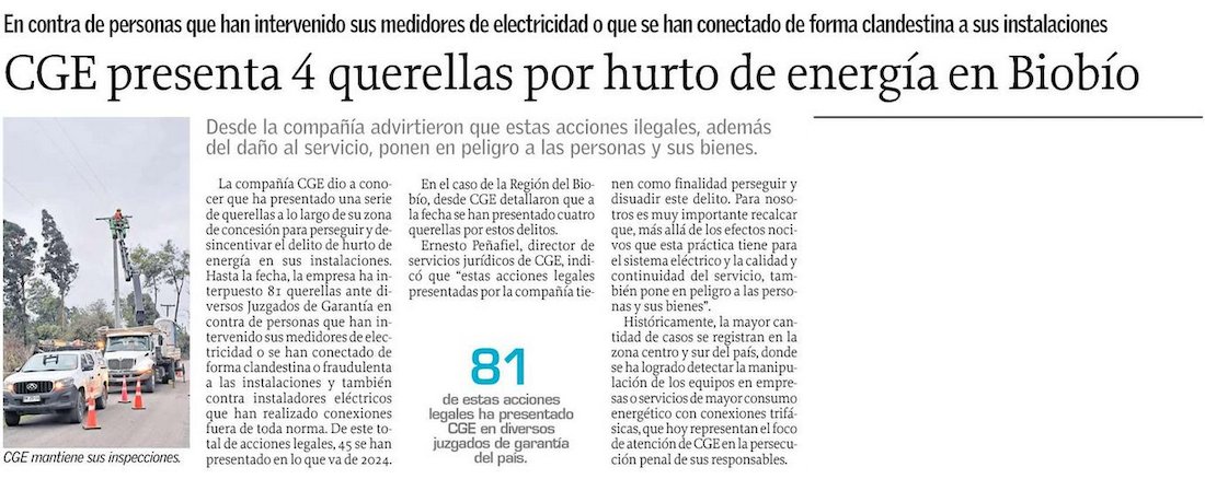CGE ha presentado 81 querellas para perseguir a responsables del delito de hurto de energía - (El Heraldo (Linares))