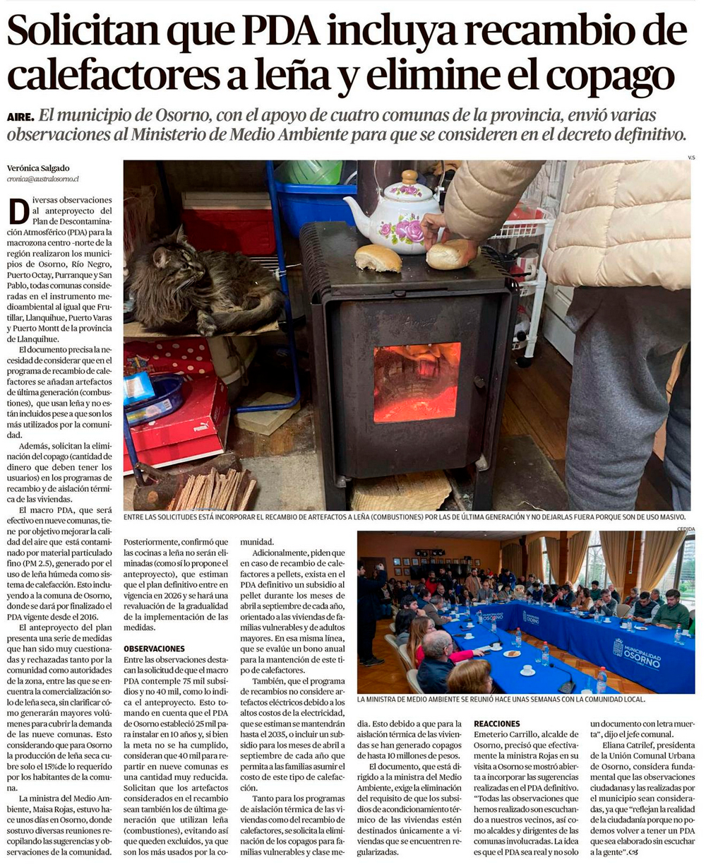 Alcaldes del sur rechazan proyecto del Gobierno que prohíbe uso de leña en casas - (El Mercurio de Santiago)