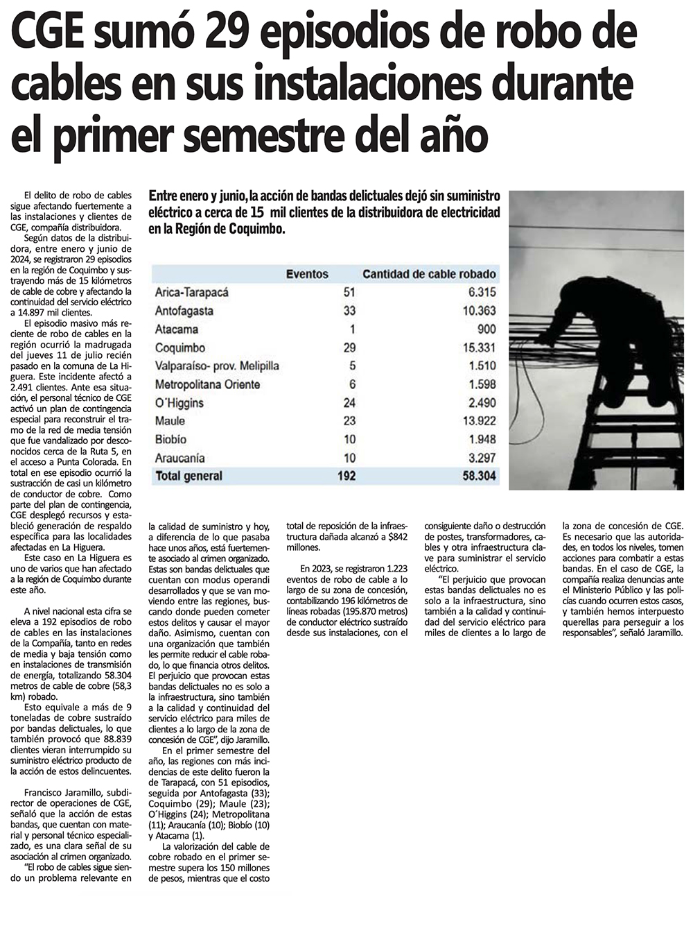CGE sumó más de 190 episodios de robo de cables en sus instalaciones en primer semestre del año - (tierramarillano.cl)