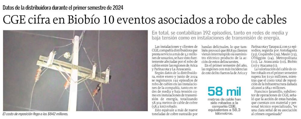 CGE sumó más de 190 episodios de robo de cables en sus instalaciones en primer semestre del año - (tierramarillano.cl)