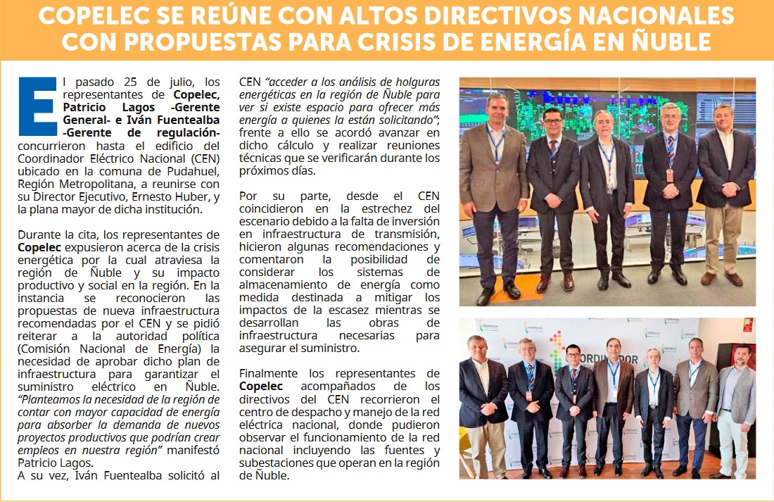 Copelec se reúne con altos directivos nacionales con propuestas para crisis de energía en Ñuble - (Crónica de Chillán)