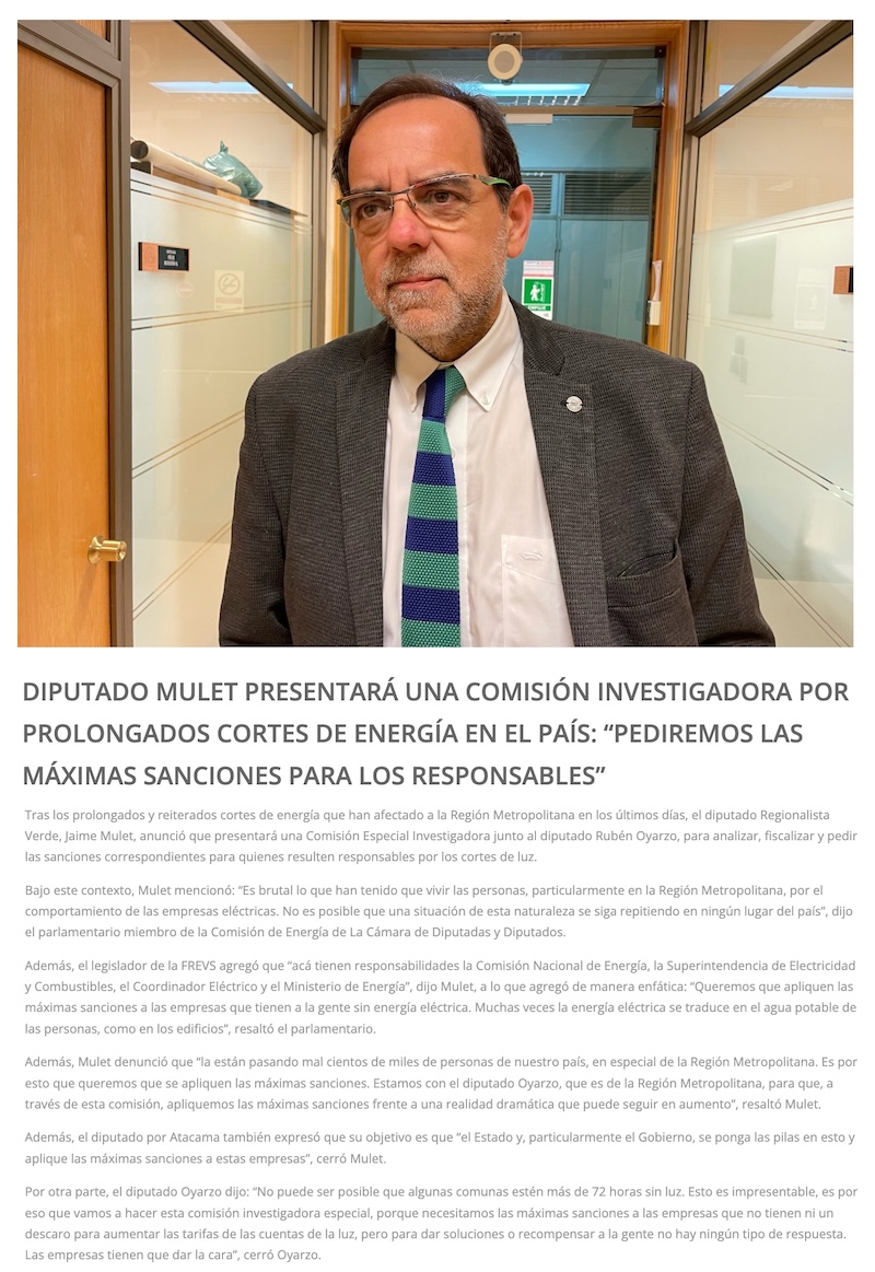 Diputado Mulet presentará una Comisión Investigadora por prolongados cortes de energía en el País: "Pediremos las máximas sanciones para los responsables" - (chanarcillo.cl)