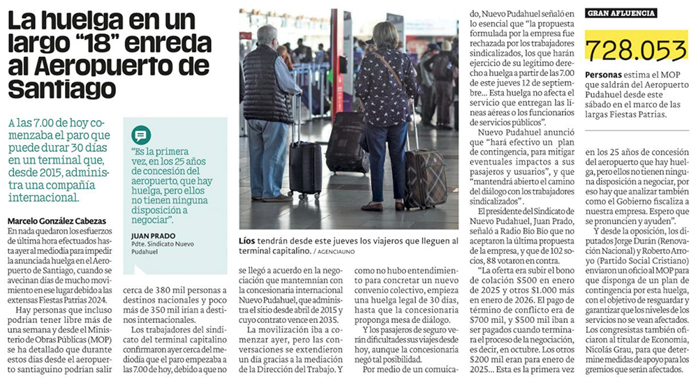 Paro en el aeropuerto y proximidad del 18 tienen en alerta a autoridades, pasajeros y aerolíneas - (La Tercera)
