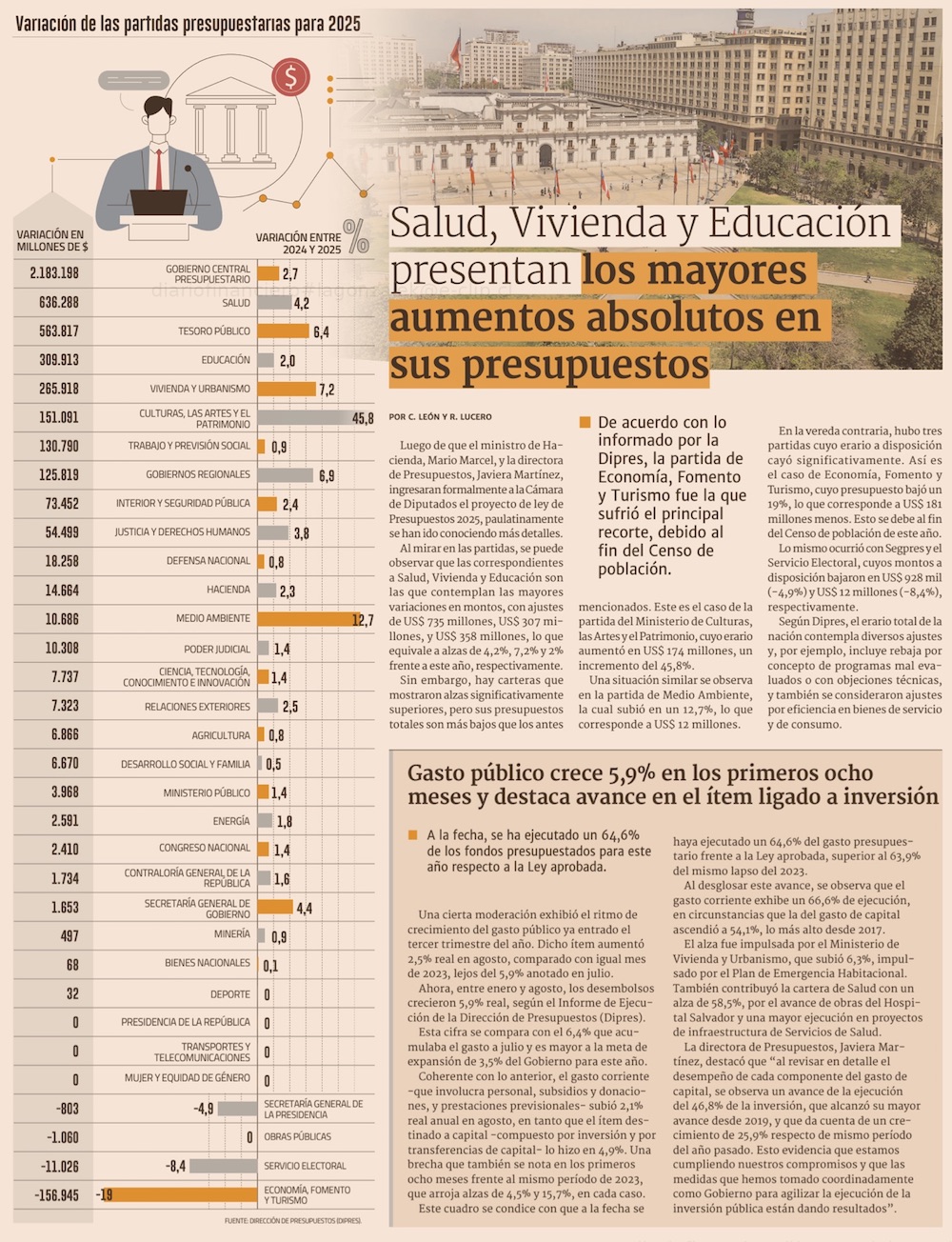 Cultura y Medio Ambiente, ministerios cuestionados en debate de “permisología”, lideran aumentos presupuestarios - (El Mercurio de Santiago)