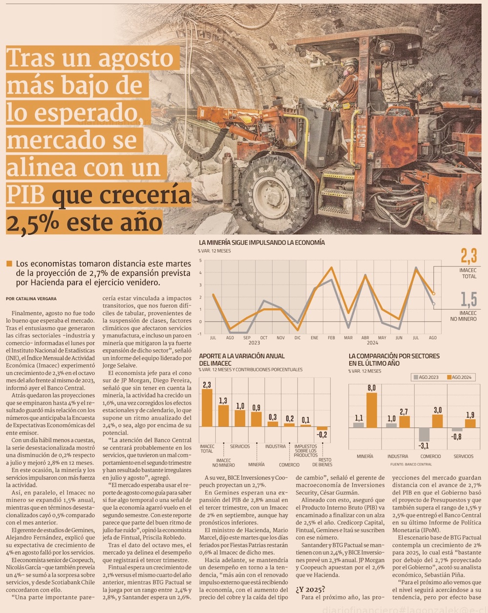 Bajo Imacec de agosto acrecienta expectativas de una nueva baja de tasas del Banco Central este mes - (Pulso)