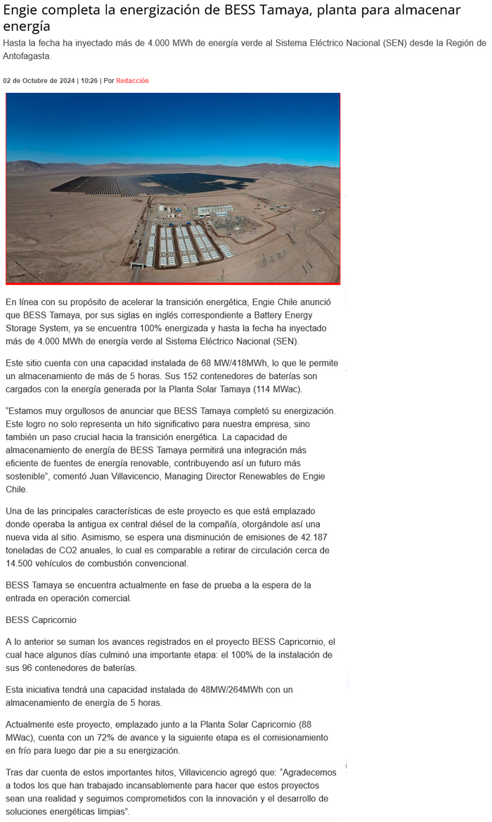ENGIE Chile completa la energización de BESS Tamaya - (region2)