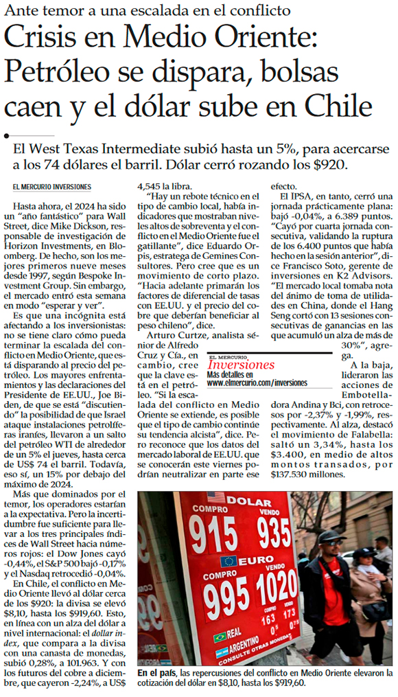 Petróleo sube por tercera jornada consecutiva por tensiones en Medio Oriente - (Diario Financiero)