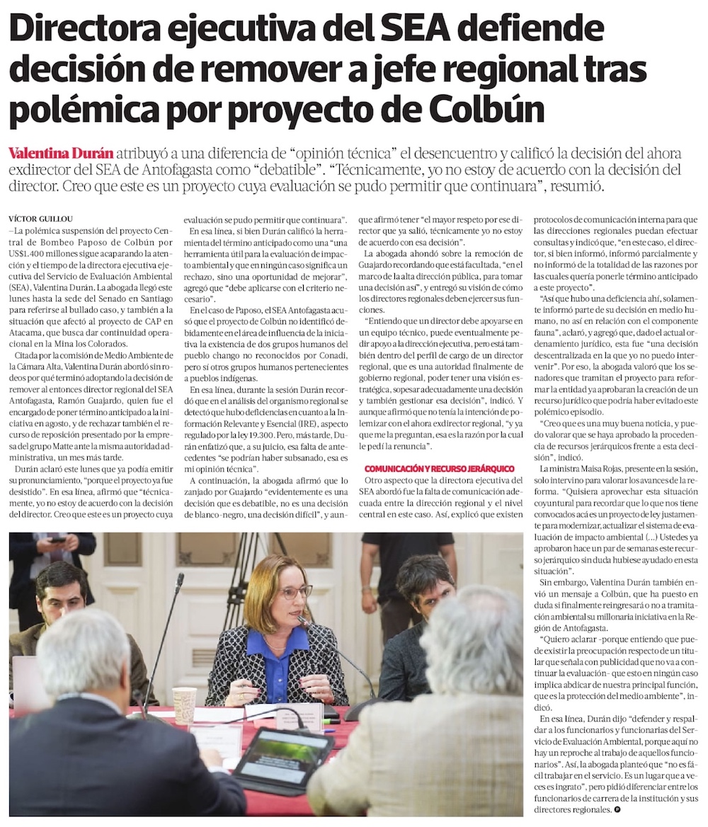 Valentina Durán y caso Colbún: “Técnicamente yo no estoy de acuerdo con la decisión del director” - (Diario Financiero)