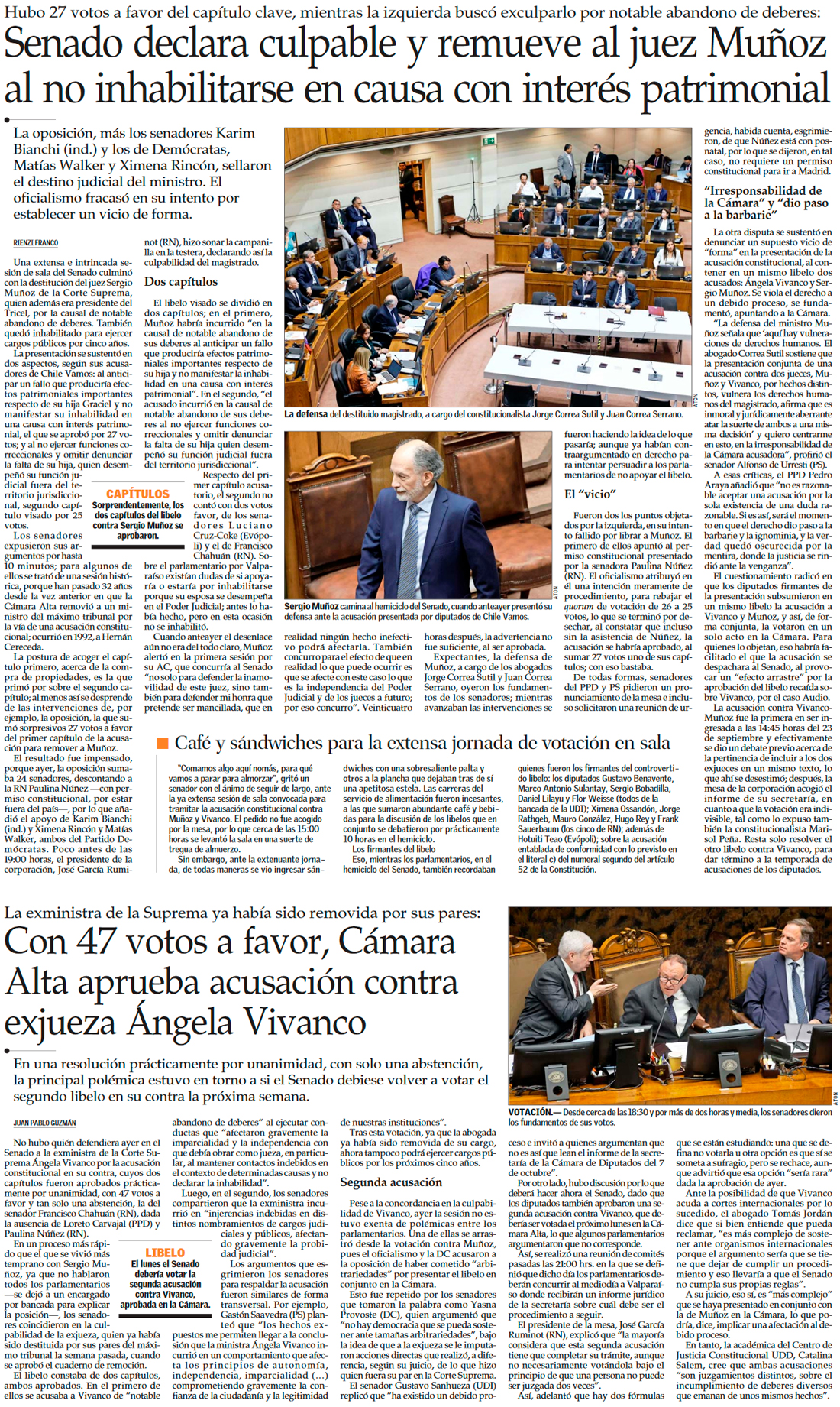 Senado aprueba acusación constitucional contra el ministro Sergio Muñoz y lo remueve del Poder Judicial - (Diario Financiero)