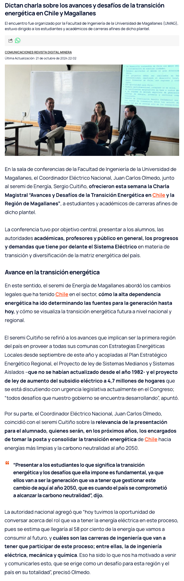 Dictan charla sobre los avances y desafíos de la Transición Energética en Magallanes - (elmagallanesnews.cl)