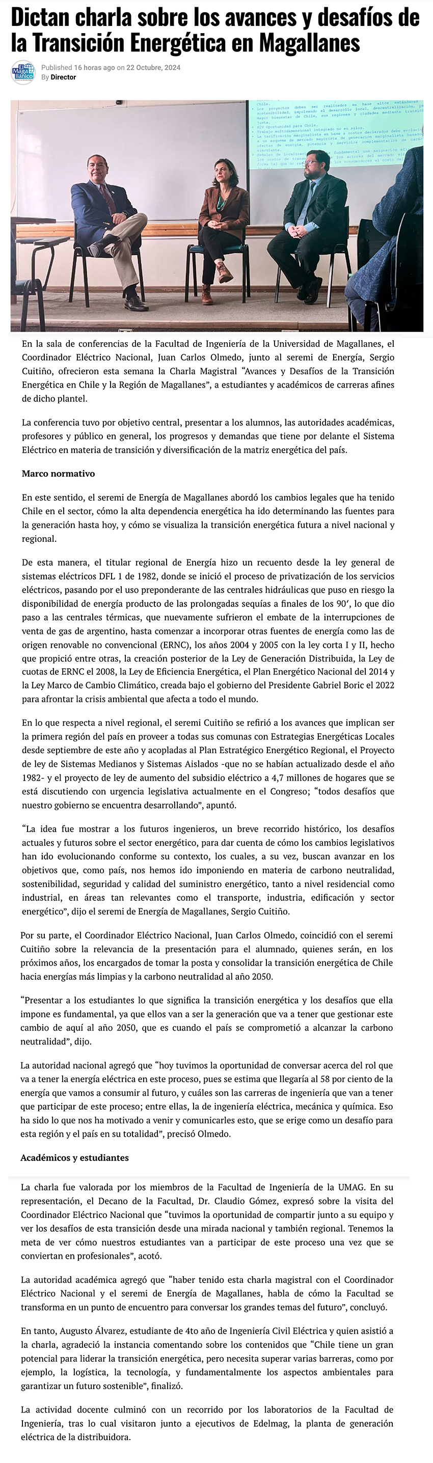 Dictan charla sobre los avances y desafíos de la transición energética en Chile y Magallanes - (redimin)