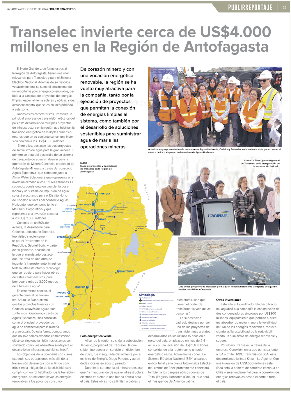 Transelec invierte cerca de US$4.000 millones en la Región de Antofagasta - (Pulso)