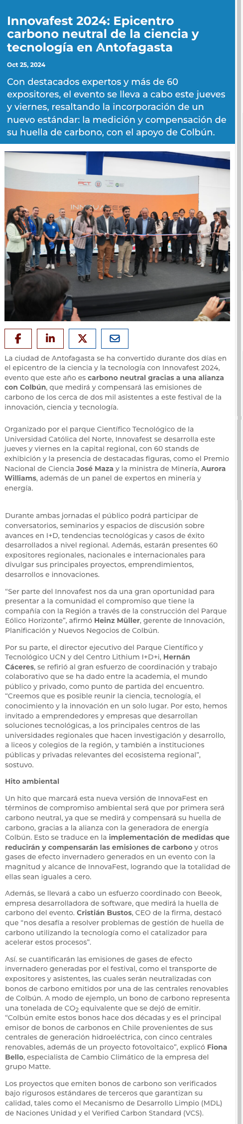 Innovafest 2024: El epicentro de la ciencia y la tecnología en Antofagasta será carbono neutral tras alianza con Colbún - (nuevaminería online)