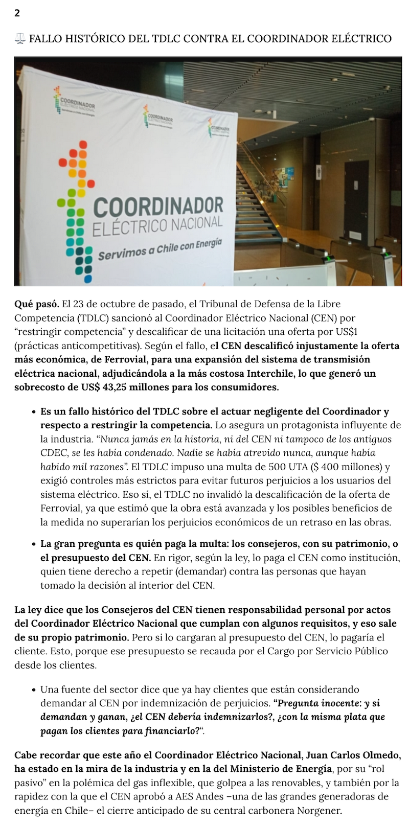 Tribunal de Defensa de la Libre Competencia multó al Coordinador Eléctrico Nacional con casi $400 millones - (electromineria.cl)