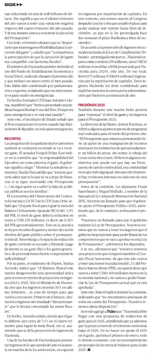 Presupuesto 2025: Gobierno cede y revisará un recorte del gasto y los cálculos de ingresos - (El Mercurio de Santiago)