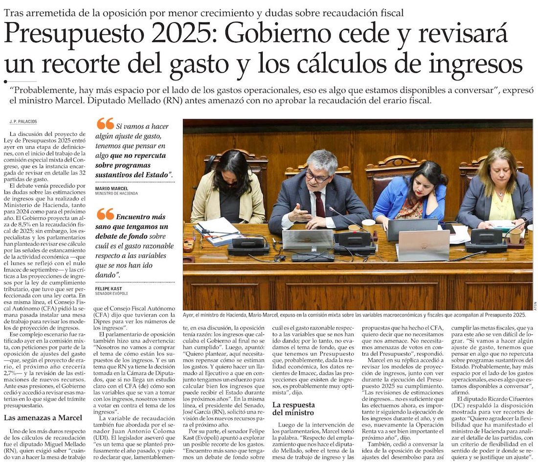 Marcel anticipa rebaja de más de US$1.000 millones en gasto fiscal de este año por menores ingresos y crece presión para recorte en Presupuesto 2025 - (Pulso)