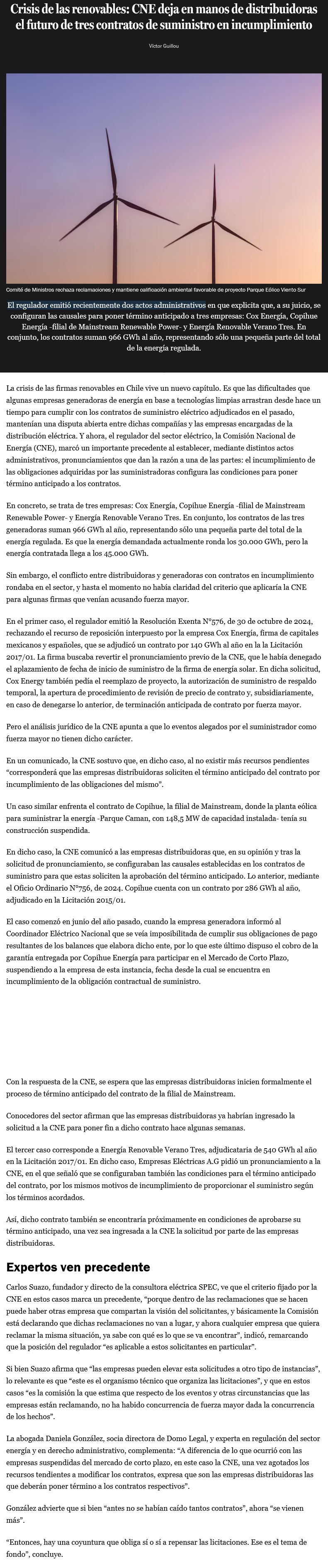 Crisis de las renovables: CNE deja en manos de distribuidoras el futuro de tres contratos de suministro en incumplimiento - (Pulso)