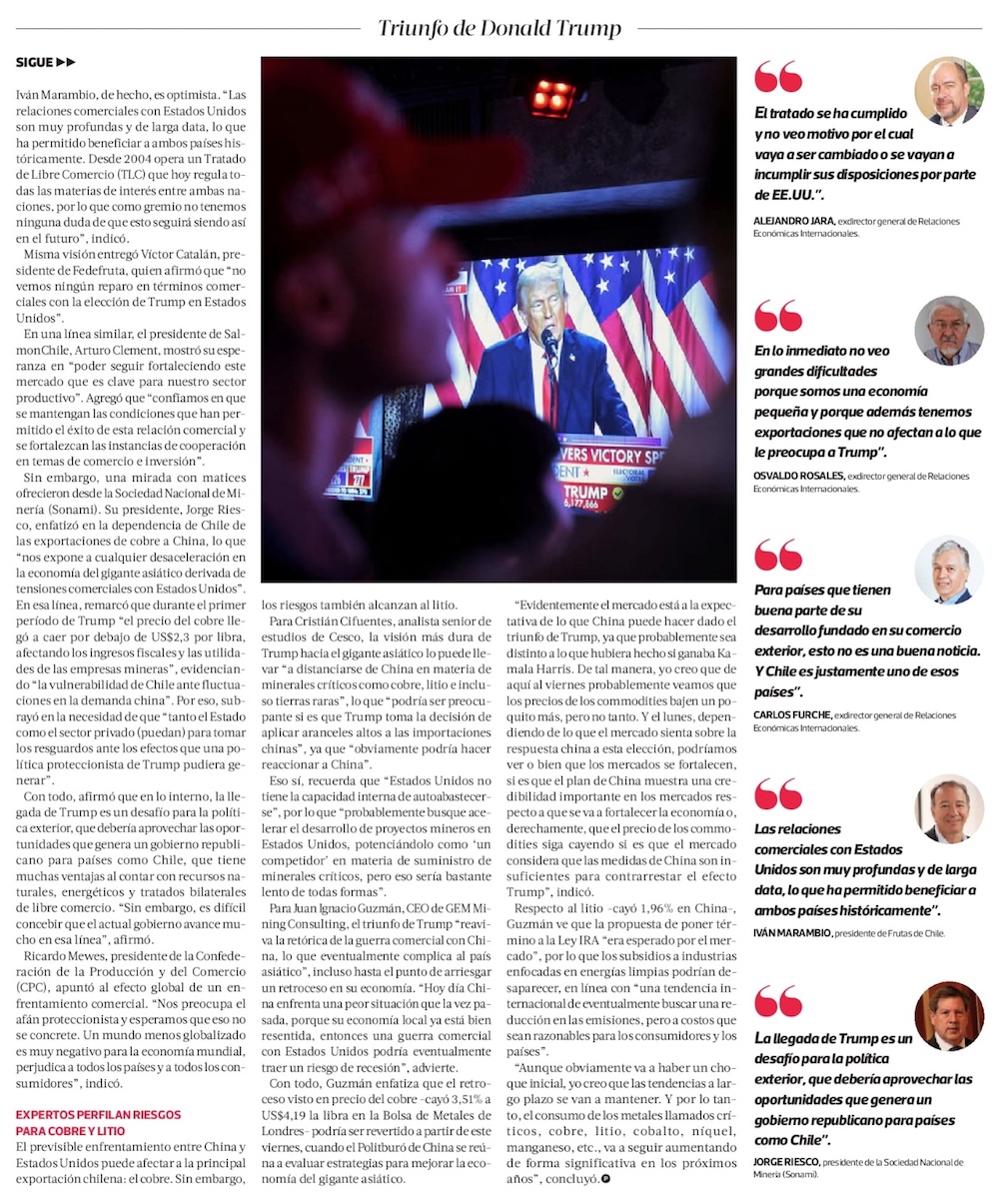 Positiva mirada entre exportadores de fruta y salmones a EEUU contrasta con inquietud entre mineros - (Diario Financiero)
