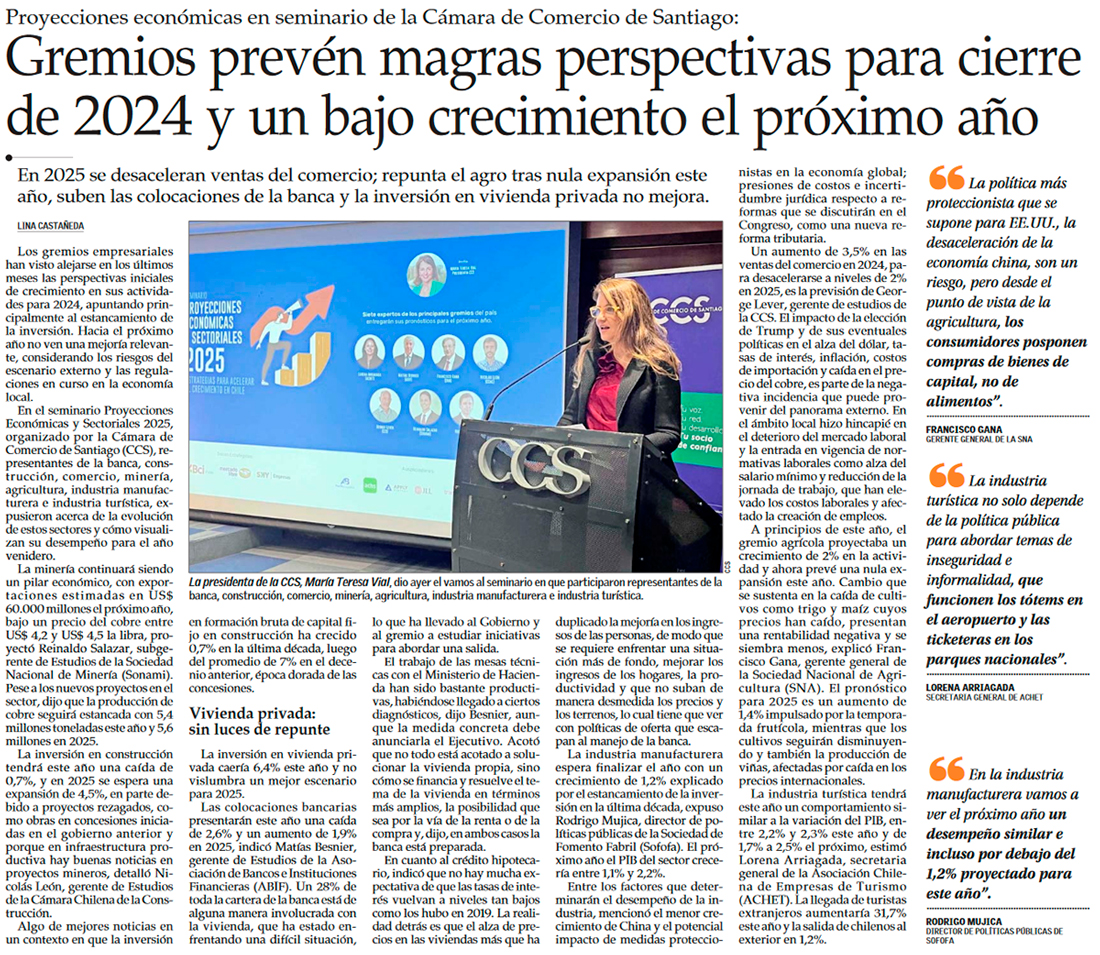 Inversión y sector externo, las inquietudes de los sectores productivos de cara a 2025 - (Diario Financiero)