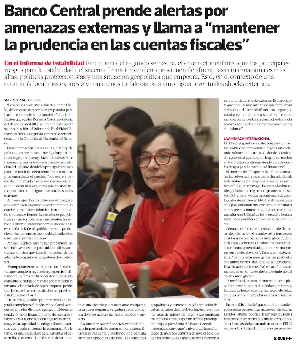 Desde tensiones geopolíticas a la “cicatriz” de los retiros: Los riesgos que alerta el BC para la estabilidad financiera - (El Mercurio de Santiago)