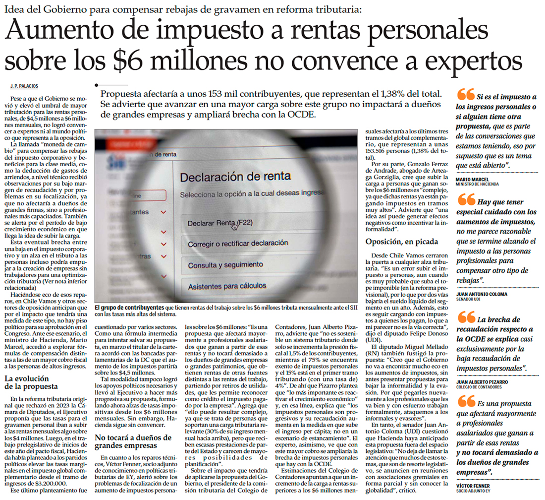 Plan de Hacienda para subir impuesto a altos ingresos aplicaría a 153 mil personas - (Diario Financiero)