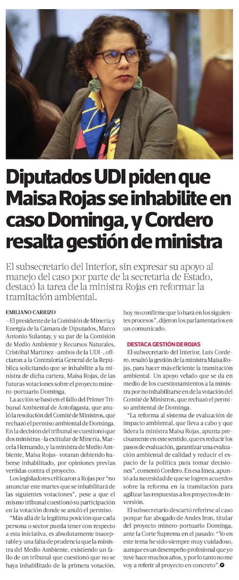 Piden a Contraloría inhabilitar a ministra de Medio Ambiente en futuras votaciones sobre Dominga - (La Región)