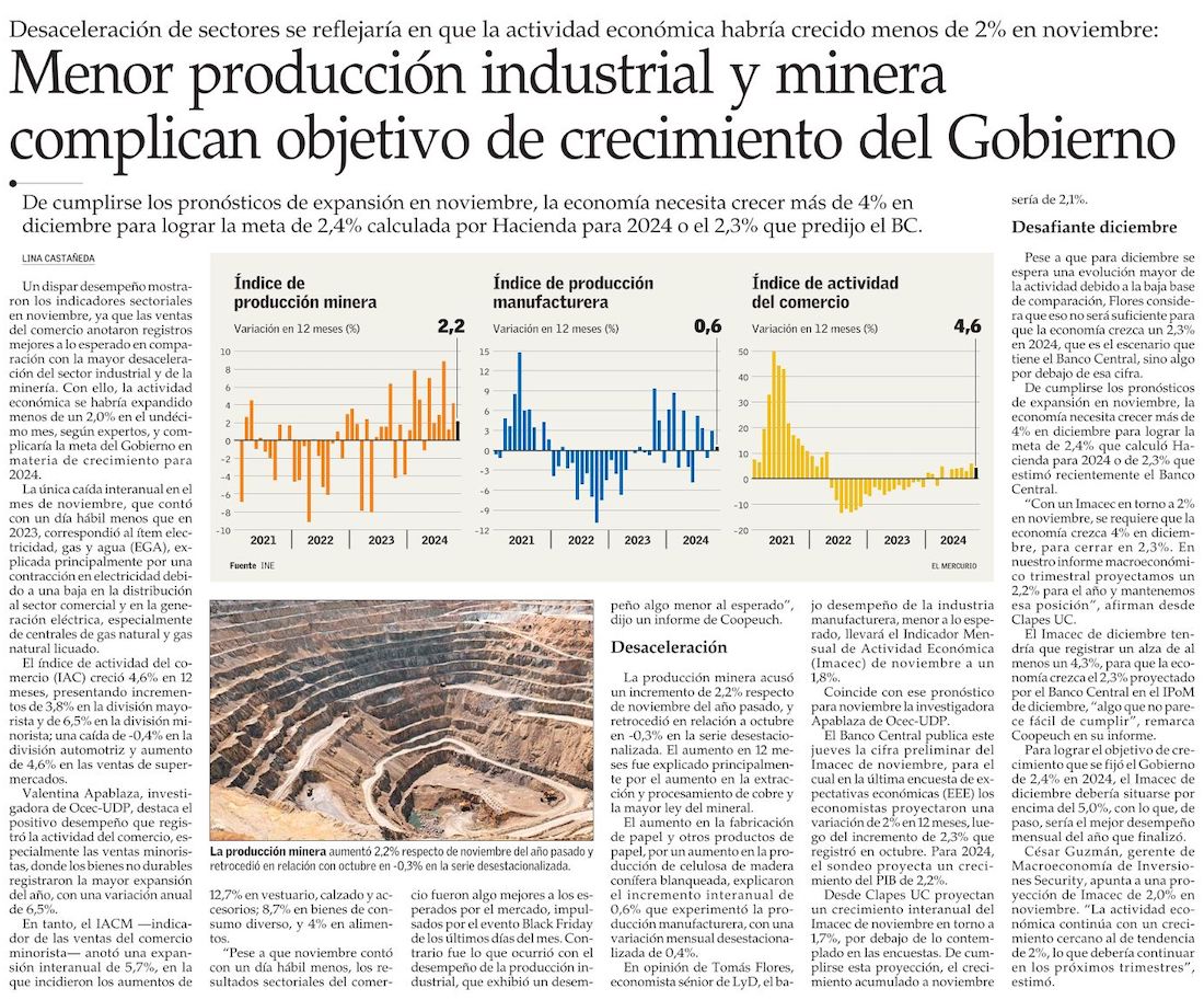Producción minera mes a mes cae otra vez en noviembre - (La Segunda)