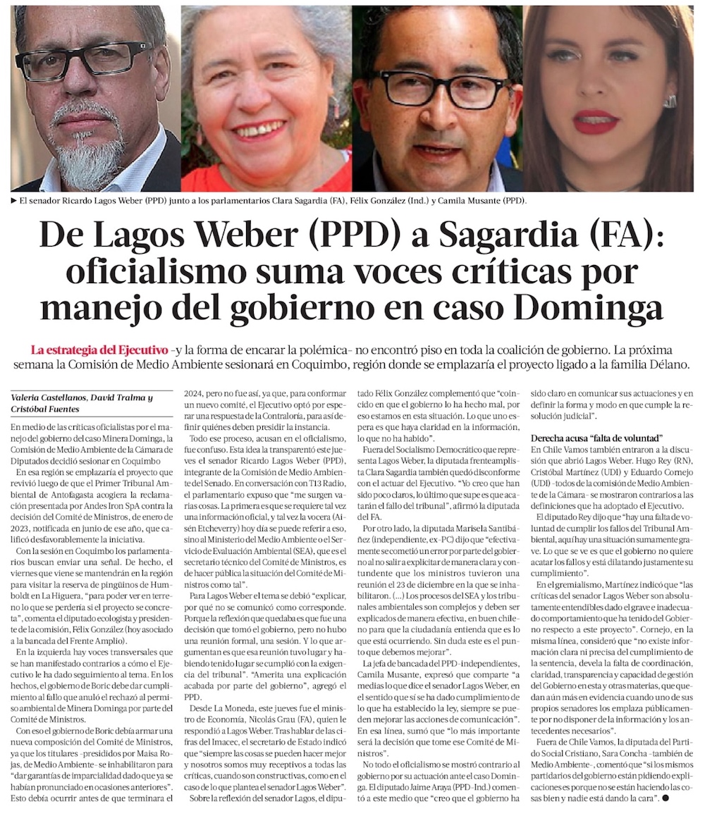 Tras indecisión del Gobierno, senadores cuestionan a ministros - (El Mercurio de Santiago)