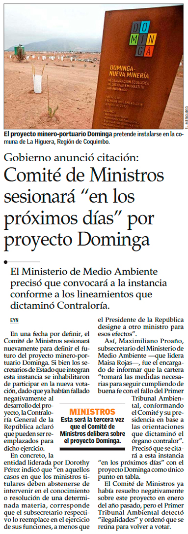 Contraloría emite dictamen y fija subrogaciones en Medio Ambiente por caso Dominga - (Pulso)