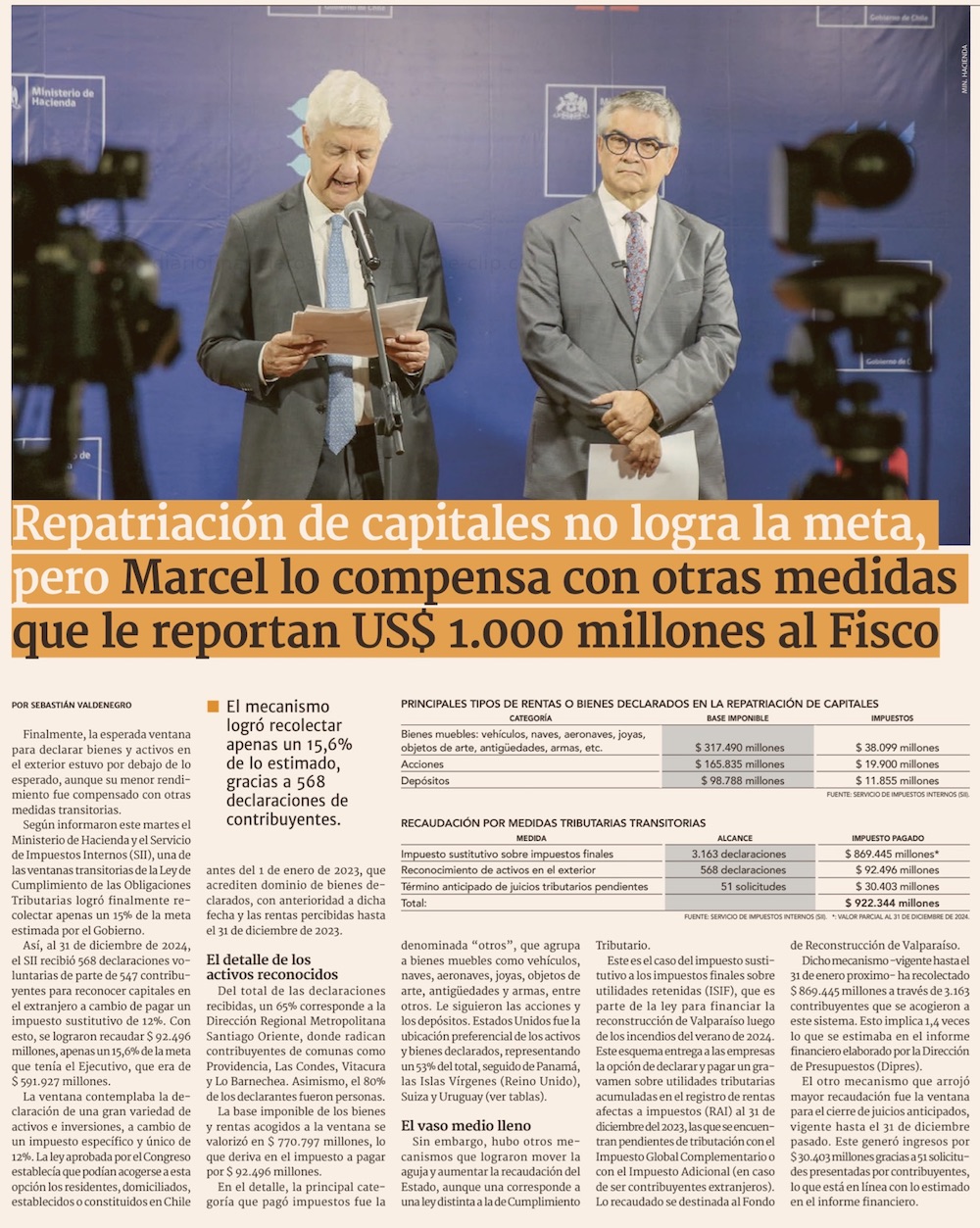 Tras decepcionante repatriación de capitales, Marcel admite que estimación era “incierta” - (El Mercurio de Santiago)
