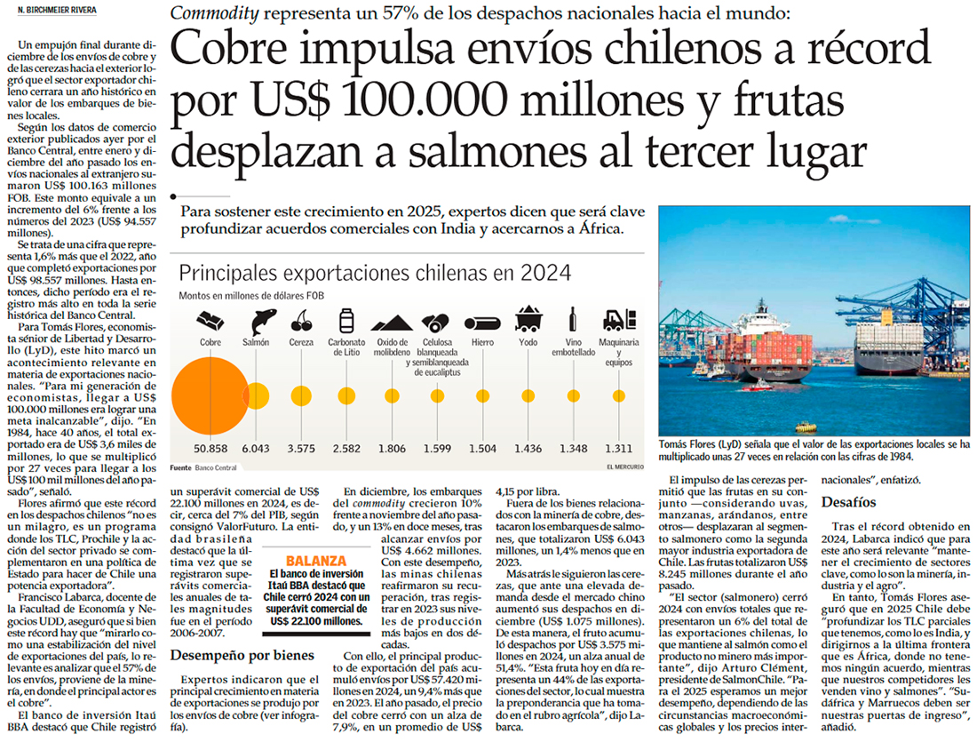 Exportaciones superaron los US$100 mil millones en 2024 - (Pulso)