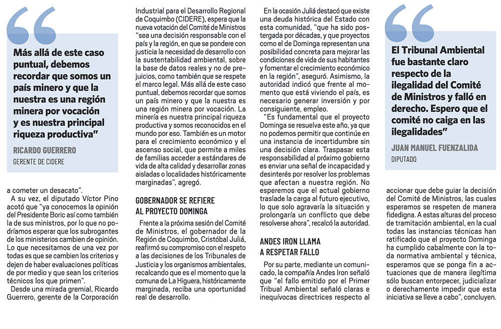 Comité “sin” Ministros resuelve hoy el futuro de la polémica Dominga - (Publimetro)