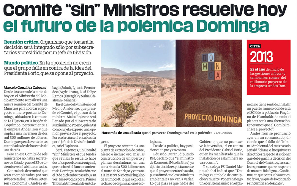 Comité de Ministros definiría futuro de Dominga durante esta jornada - (El Día)