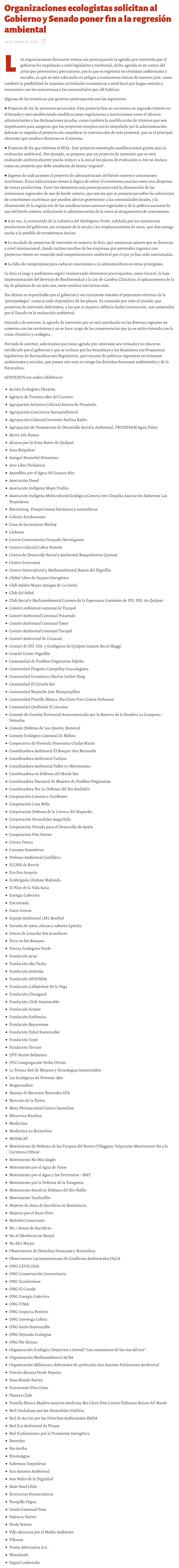 Organizaciones de todo el país llaman al gobierno de Boric a “terminar con el proceso de regresión ambiental” - (elperiodista.cl)