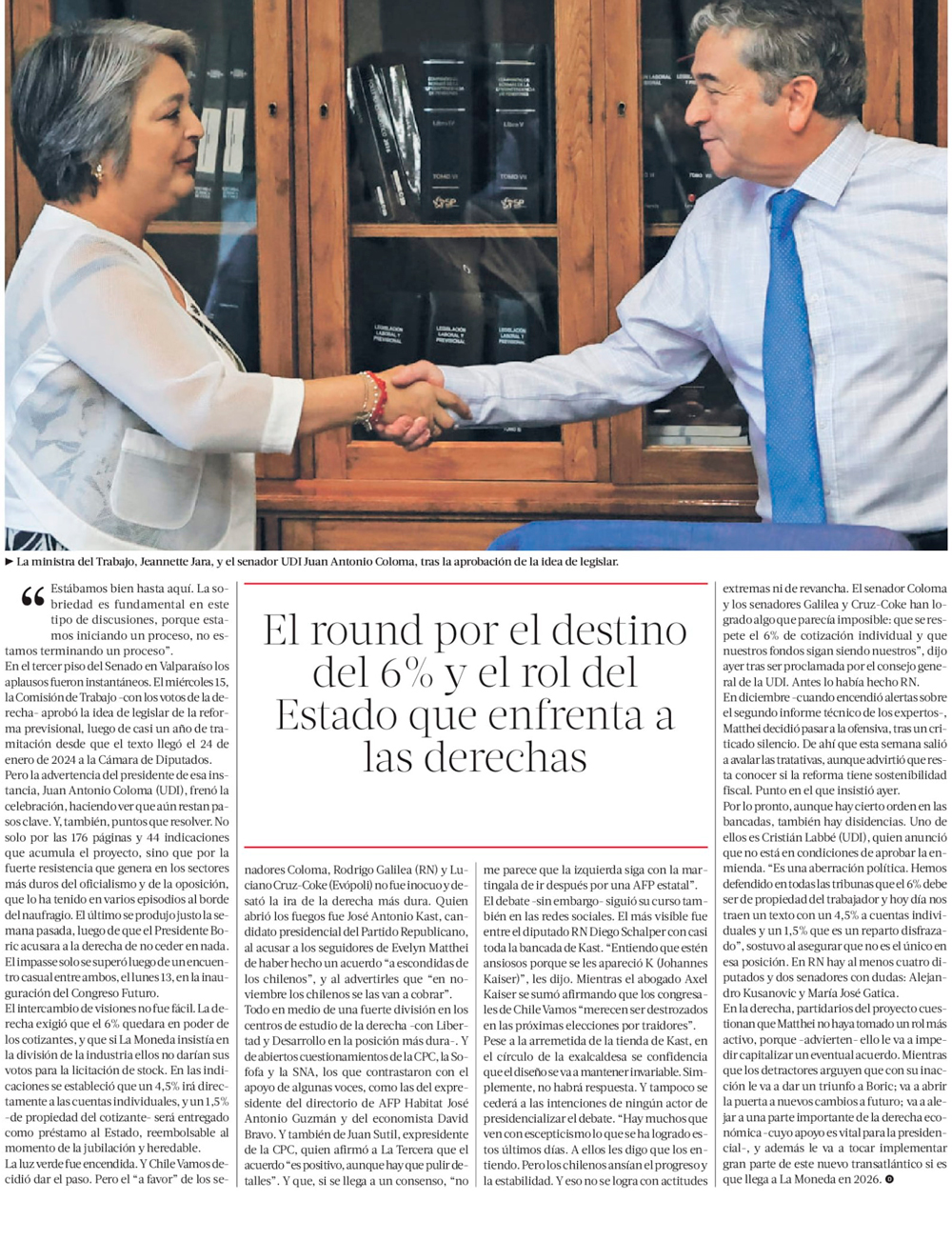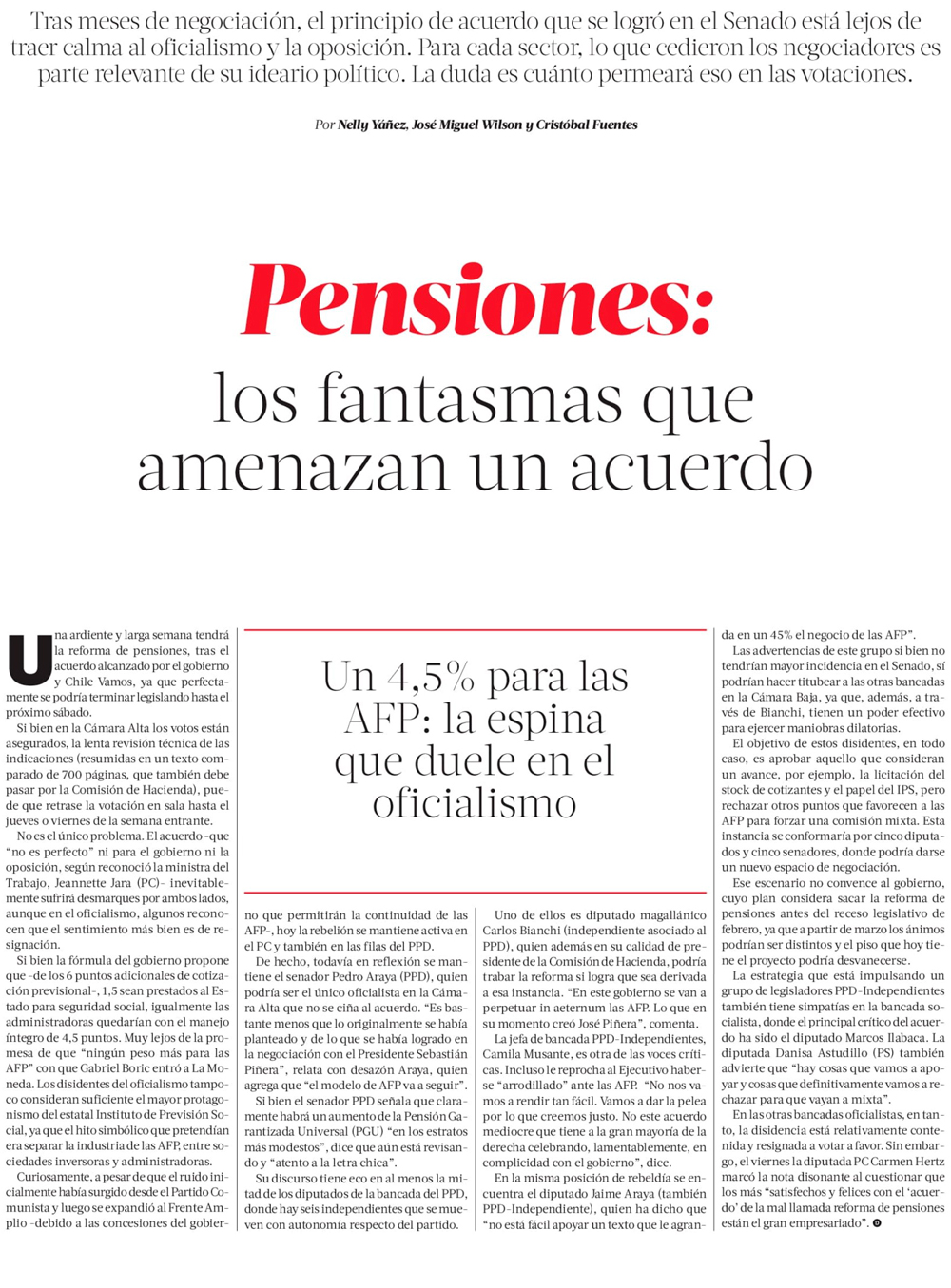 Senado avanza en aprobación de reforma de pensiones y ministra Jara critica a las AFP - (El Mercurio de Santiago)