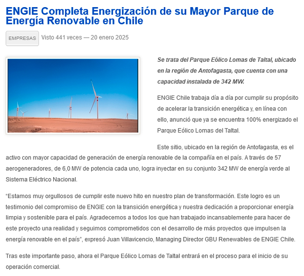 Engie finaliza energización de su mayor proyecto de energía renovable en Chile - (revistaei.cl)