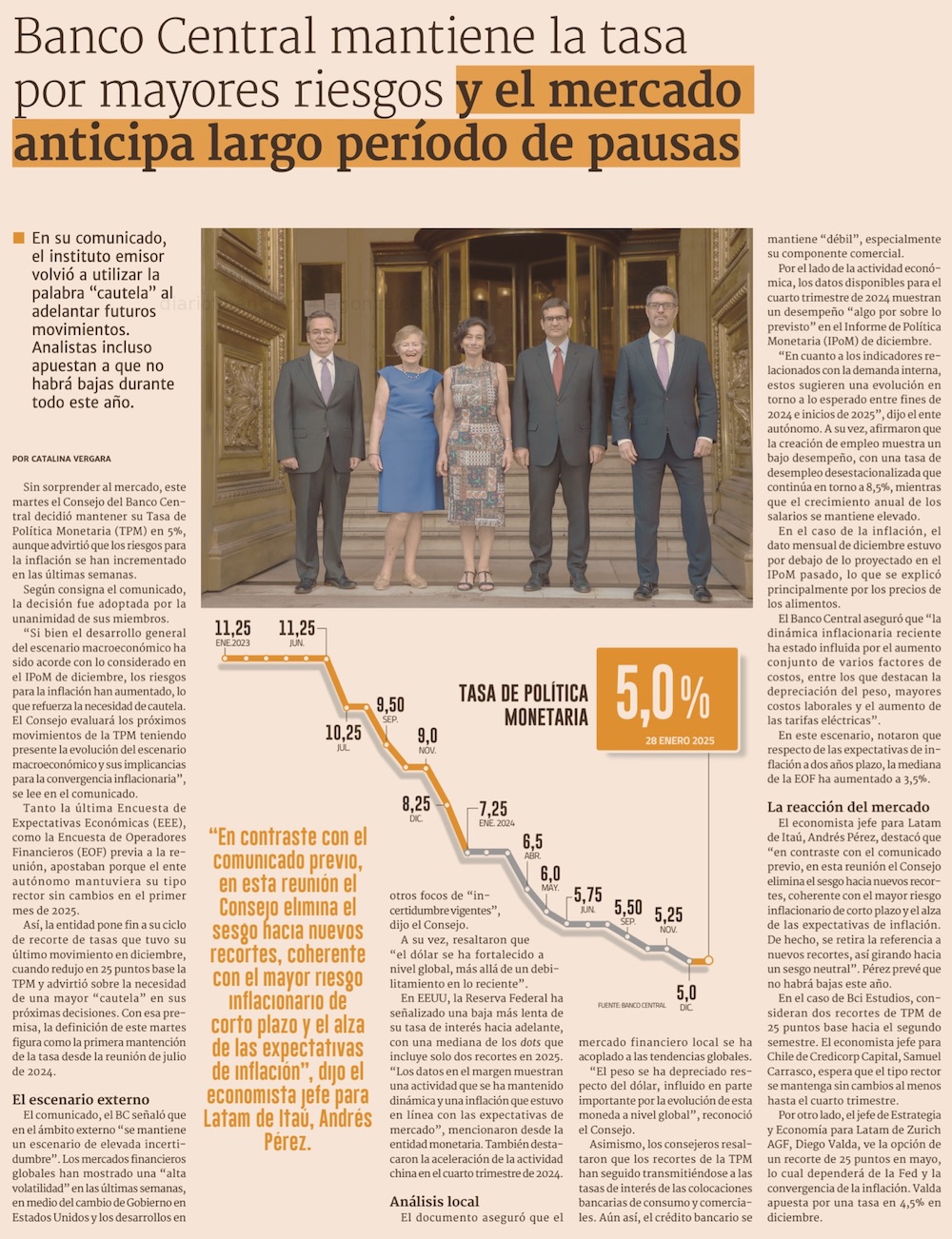 Banco Central refuerza cautela ante mayor riesgo inflacionario y mantiene la tasa de interés rectora - (El Mercurio de Santiago)
