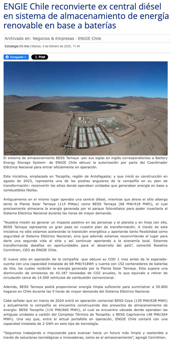 ENGIE Chile reconvierte ex central diésel en BESS Tamaya para almacenamiento de energía renovable - (cualestuhuella.cl)
