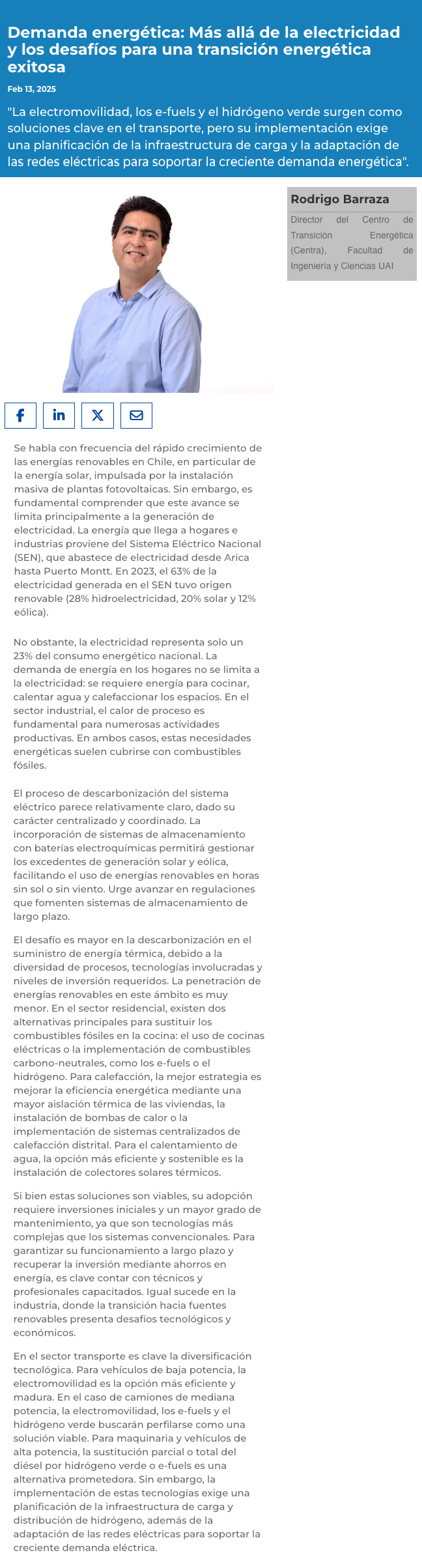Demanda energética y los desafíos para una transición energética exitosa - (Diario Financiero)