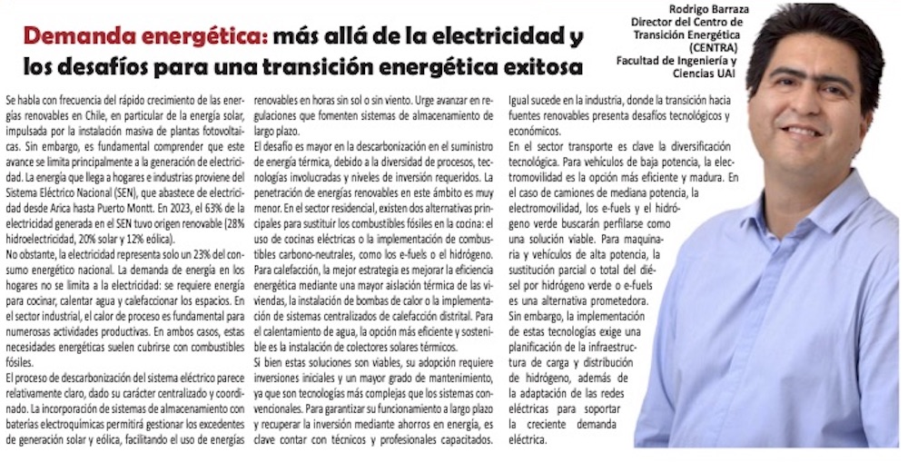 Demanda energética y los desafíos para una transición energética exitosa - (Diario Financiero)