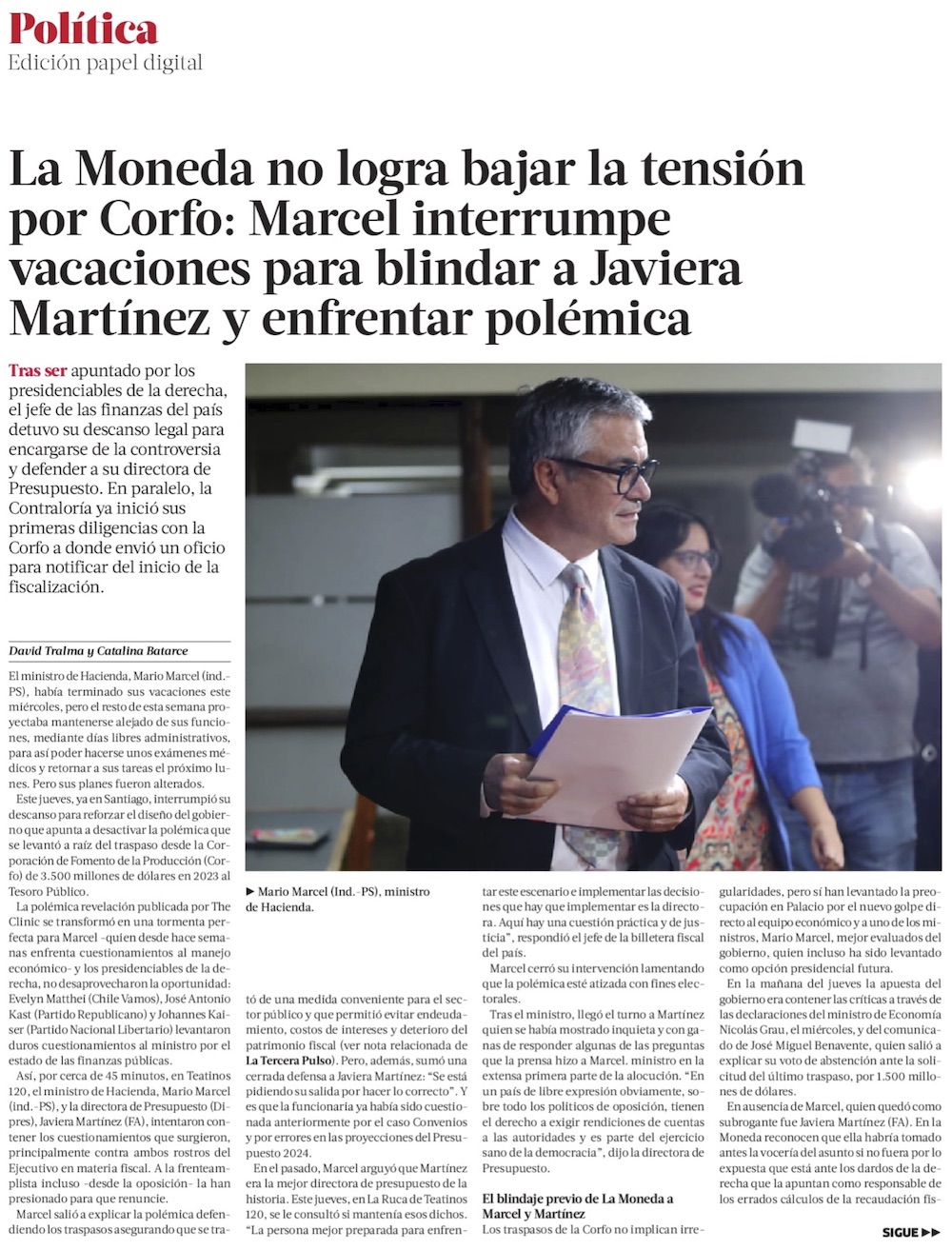 Marcel justifica los millonarios traspasos desde Corfo: “Permitieron evitar elevar el endeudamiento” - (El Mercurio de Santiago)